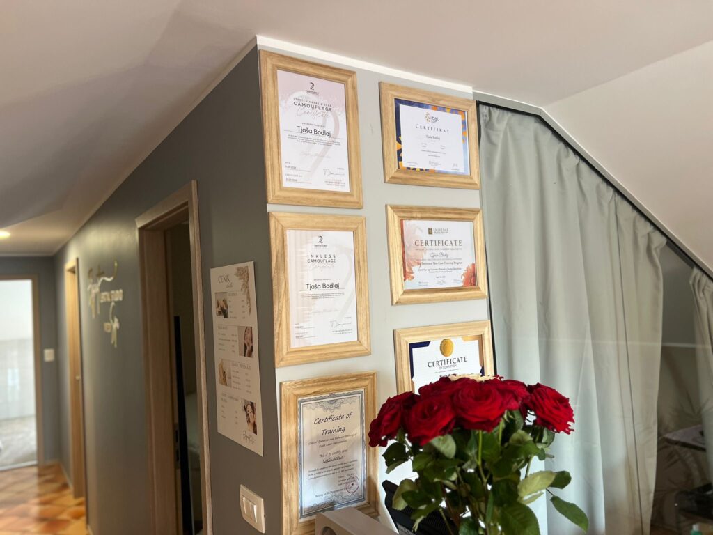 Imamo certifikate priznanih mednarodnih akademij, kot so Inkless Academy London, 22 Institute in Phi Academy, kar zagotavlja najvišjo raven storitev.
